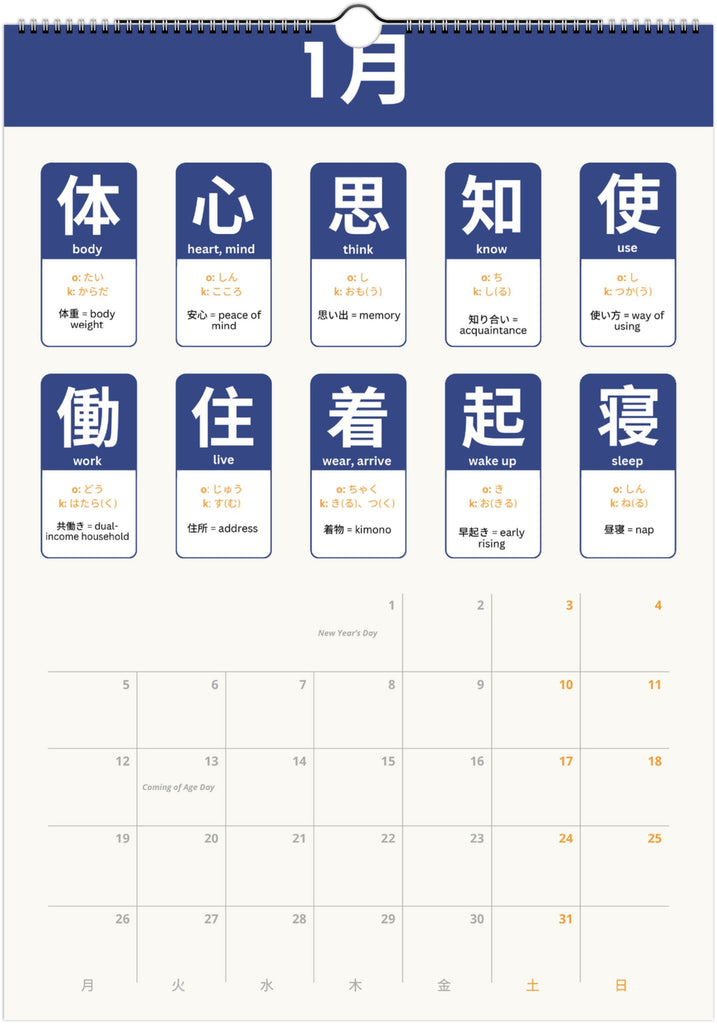 Beautiful, balanced, and educational — this calendar looks just as good as it is useful. It’s a daily companion for anyone studying Japanese, combining minimalist design with effective language learning that lasts all year.