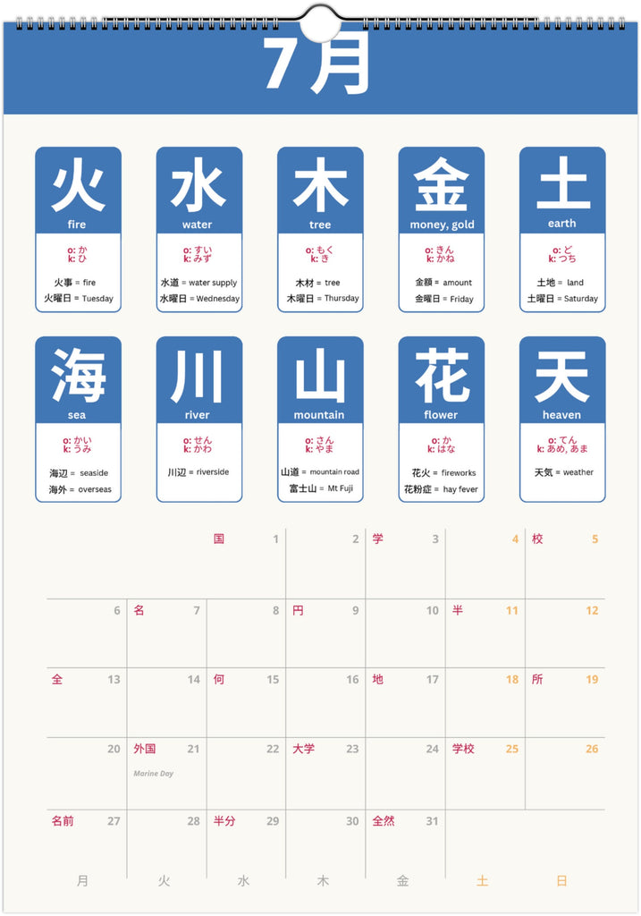 Beautifully balanced and highly practical, this calendar is more than a study aid — it’s a piece of art that keeps you inspired to learn Japanese all year round.